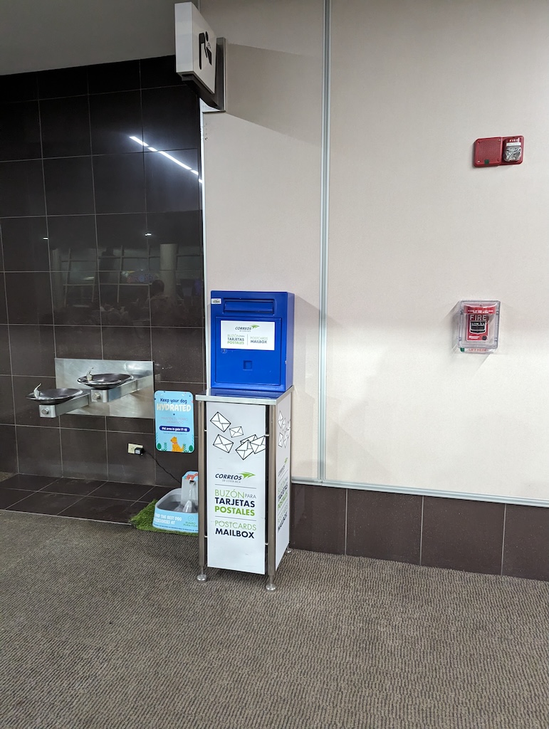 There are postcard drop boxes in the main international terminal across from Gate 8’s restaurant and also across from Gate 10..